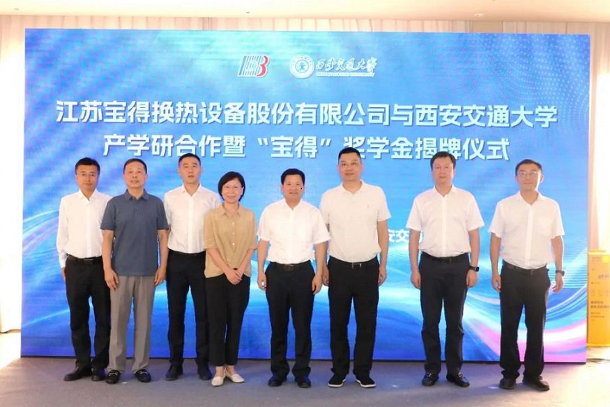 查看詳細(xì) >>8月18日下午,江蘇寶得換熱設(shè)備股份有限公司與西安交通大學(xué)簽署產(chǎn)學(xué)研合作協(xié)議及“寶得”獎(jiǎng)學(xué)金揭牌儀式在江陰成功舉行。 出席儀式的領(lǐng)導(dǎo)與嘉賓包括:江陰市人民政府副市長(zhǎng)季震,西安交通大學(xué)校長(zhǎng)助理黃...