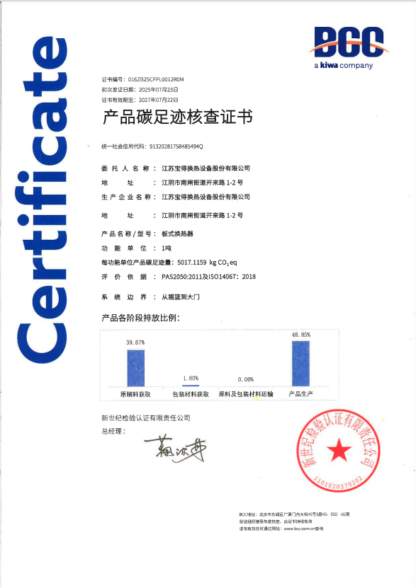 江蘇寶得產(chǎn)品碳足跡報(bào)告及證書