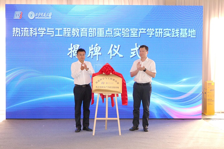 屈治國與李奕為“熱流科學(xué)與工程教育部重點(diǎn)實(shí)驗(yàn)室產(chǎn)學(xué)研實(shí)踐基地”揭牌。